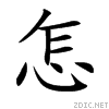 常用词组·怎的 ·怎地 ·怎么 ·怎么样 ·怎么着 ·怎奈 ·怎生 ·怎样 《康熙字典》 - 《卯集上》《心字部》 ·怎 ·康熙筆画:9 ·部外筆画:5