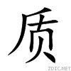 - 《唐韻》之日切《集韻》《韻會》《正韻》職日切,音桎。《易·繫辭》原始要終,以爲質也。《註》質,體也。 又《詩·小雅》民之質矣。《傳》質,成也。《朱傳》實也。又《大雅》虞芮質厥成。《傳》質,成也。成,平也。《疏》三字義同,故以質爲成,以成爲平。《朱傳》質,正。成,平也。 又《詩·小雅》發彼有的。《傳》的,質也。《疏》十尺曰侯,四尺曰鵠,二尺曰正,四寸曰質。鵠及正、質,皆在侯中也。 又《周禮·地官·質人》大市曰質,小市曰劑。《註》質劑者,爲之券藏之也。 又《儀禮·士冠禮》質明行事。《註》質,正也。《禮·月令》黑黃蒼赤,莫不質良。《註》所染者當得眞采正善也。又《聘義》君子於其所尊,弗敢質。《註》質謂正自相當。 又《禮·曲禮》質君之前。《註》質猶對也, 又《廣雅》質,地也。《禮·禮器》禮釋回增美質。《註》質,猶性也。 又《公羊傳·定八年》弓繡質。《註》質,拊也。 又《史記·范睢傳》不足以當椹質。《註》質,剉刃也。 又《前漢·張釋之傳》具以質言。《註》質,誠也。 又《廣雅》問也,定也。 又《小爾雅》質,信也。 又《玉篇》主也,樸也。《禮·樂記》中正無邪,禮之質也。《註》質,猶本也。禮爲之文飾也。 又姓。《前漢·貨殖傳》質氏以洒削而鼎食。 又《廣韻》《集韻》《韻會》陟利切,音致。《說文》以物相贅。《左傳·隱三年》故周鄭交質。 又《集韻》脂利切。贄,亦作質。《左傳·昭三年》將奉質幣,以無失時。《晉語》臣委質于翟之鼓。《孟子》不傳質爲臣。