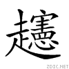 - 《廣韻》《集韻》許建切,音憲。《說文》走意。《石鼓文》𧾨𧾨𤒞𤒞。 又《集韻》五遠切,音阮。又許偃切,音幰。義同。